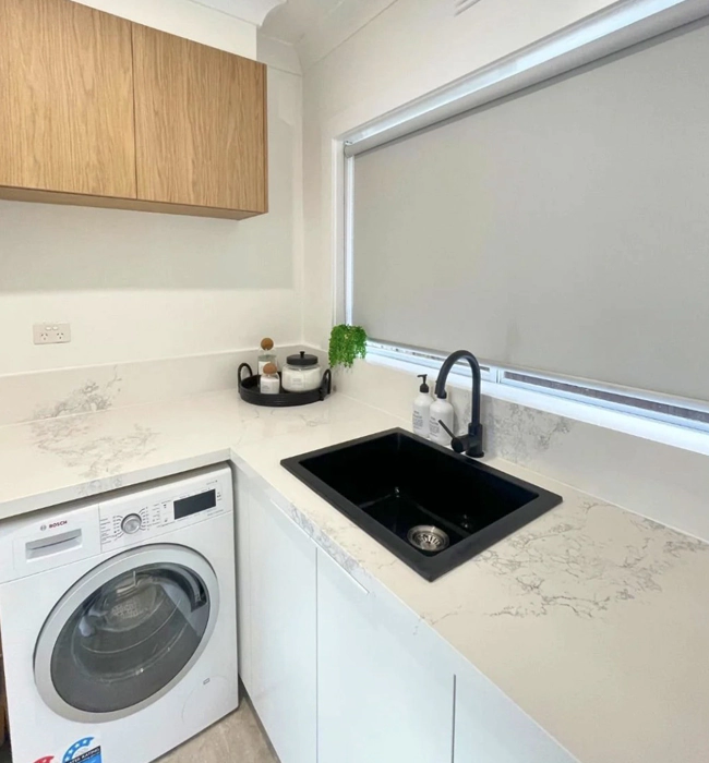 A well-designed laundry can quietly make life easier. When there’s enough bench space to fold, proper storage for cleaning supplies, and appliances positioned logically, the room just works. It becomes less of a squeeze and more of a functional utility space.